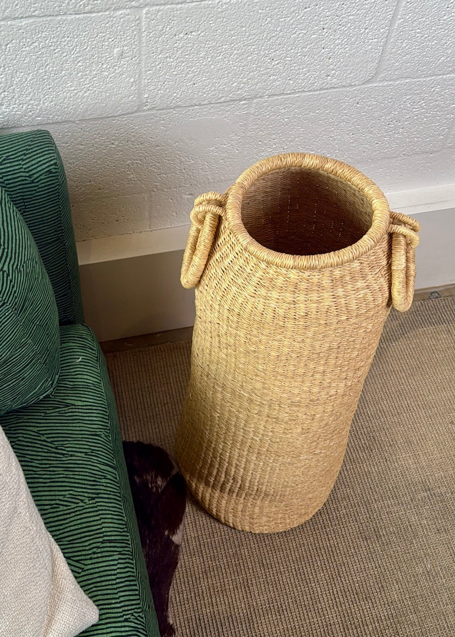 A stunning woven vessel handmade by weavers in northern Ghana.
